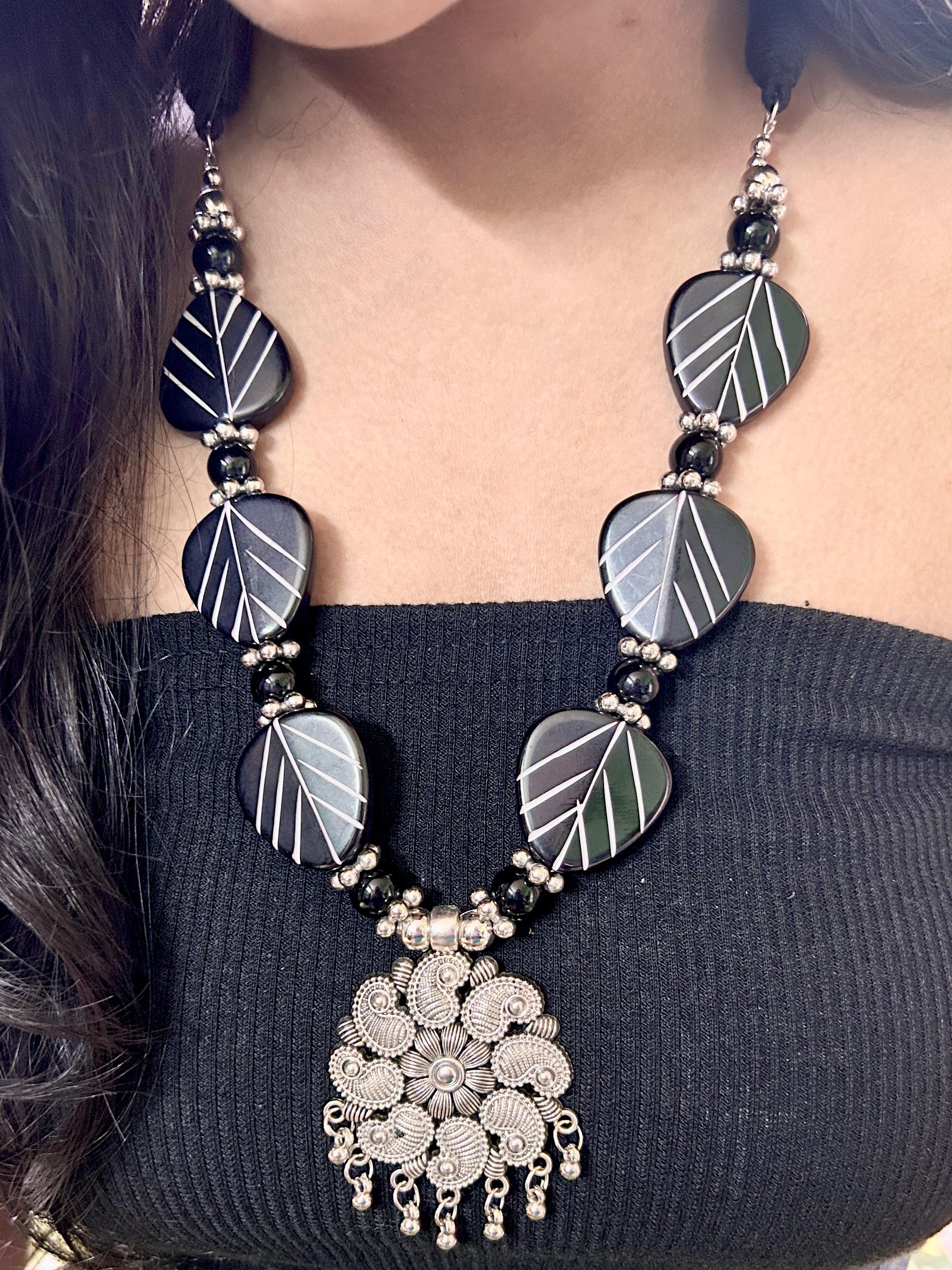 Pair this necklace with a simple kurti or an elegant saree to let the bold black beads take center stage.