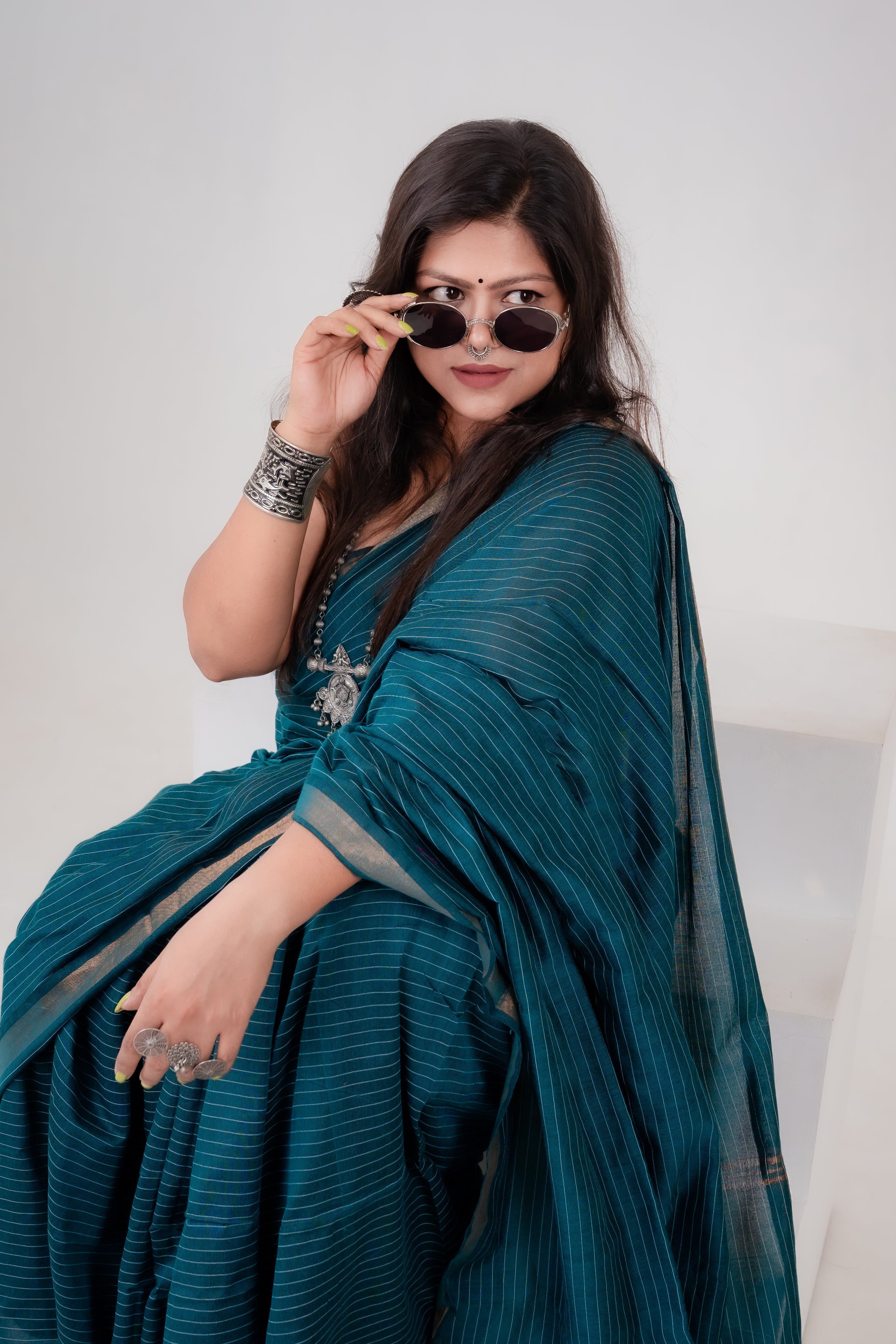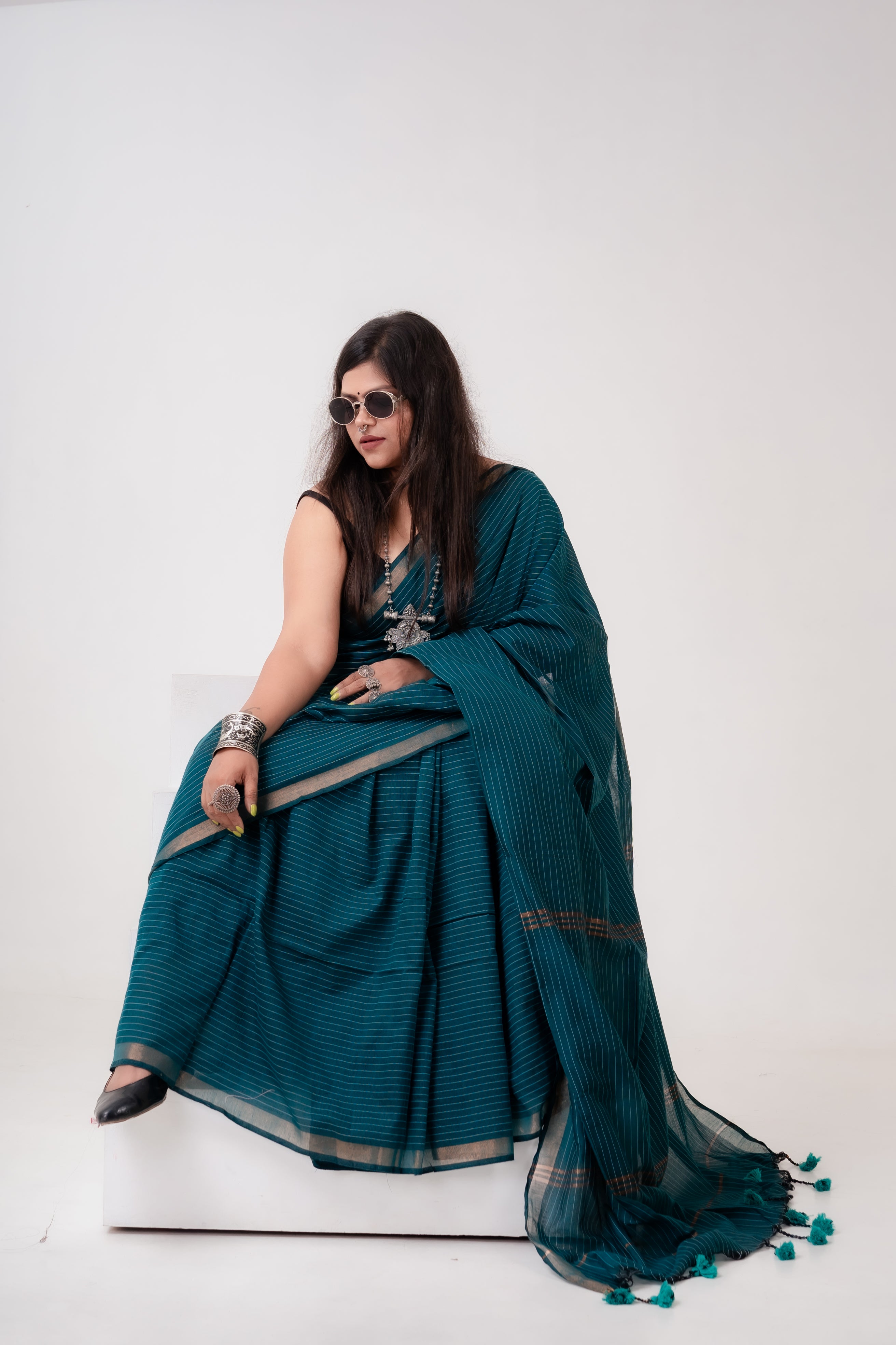 Craft Details: Handwoven pinstripe pattern with zari detailing