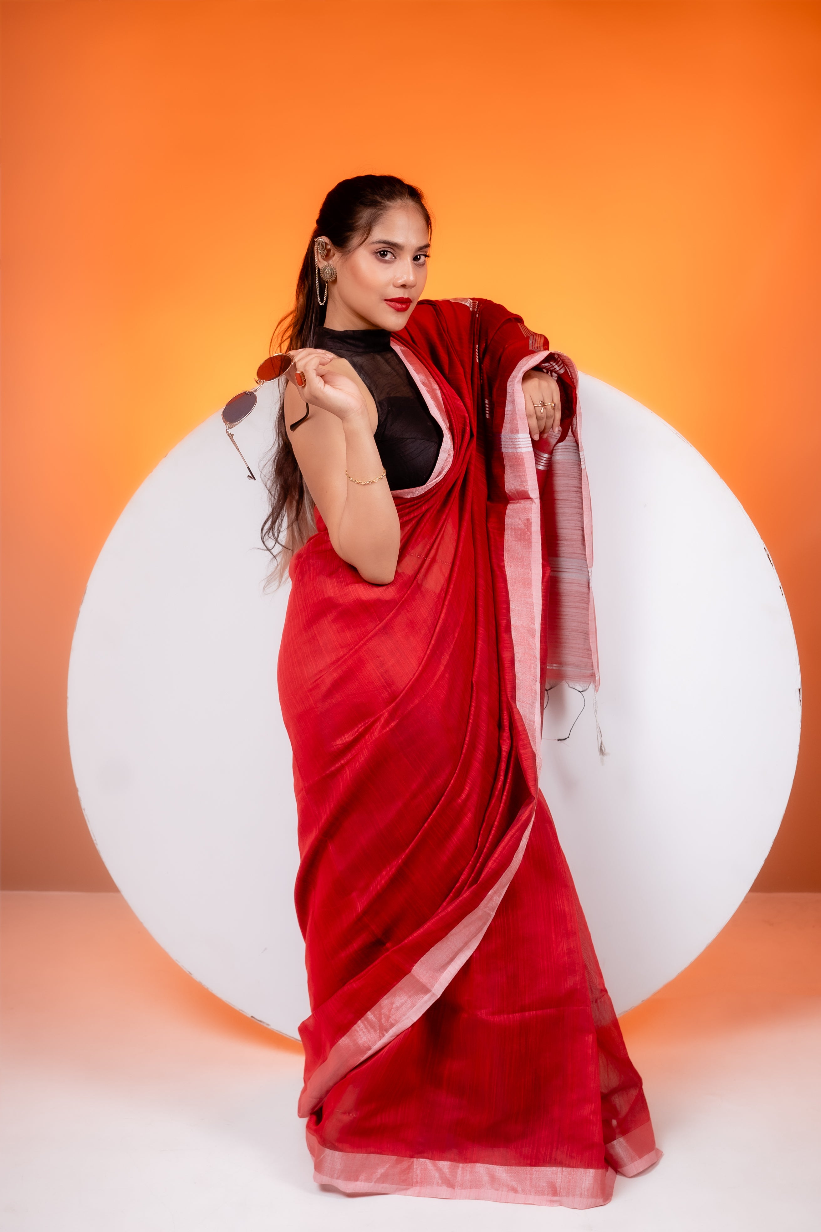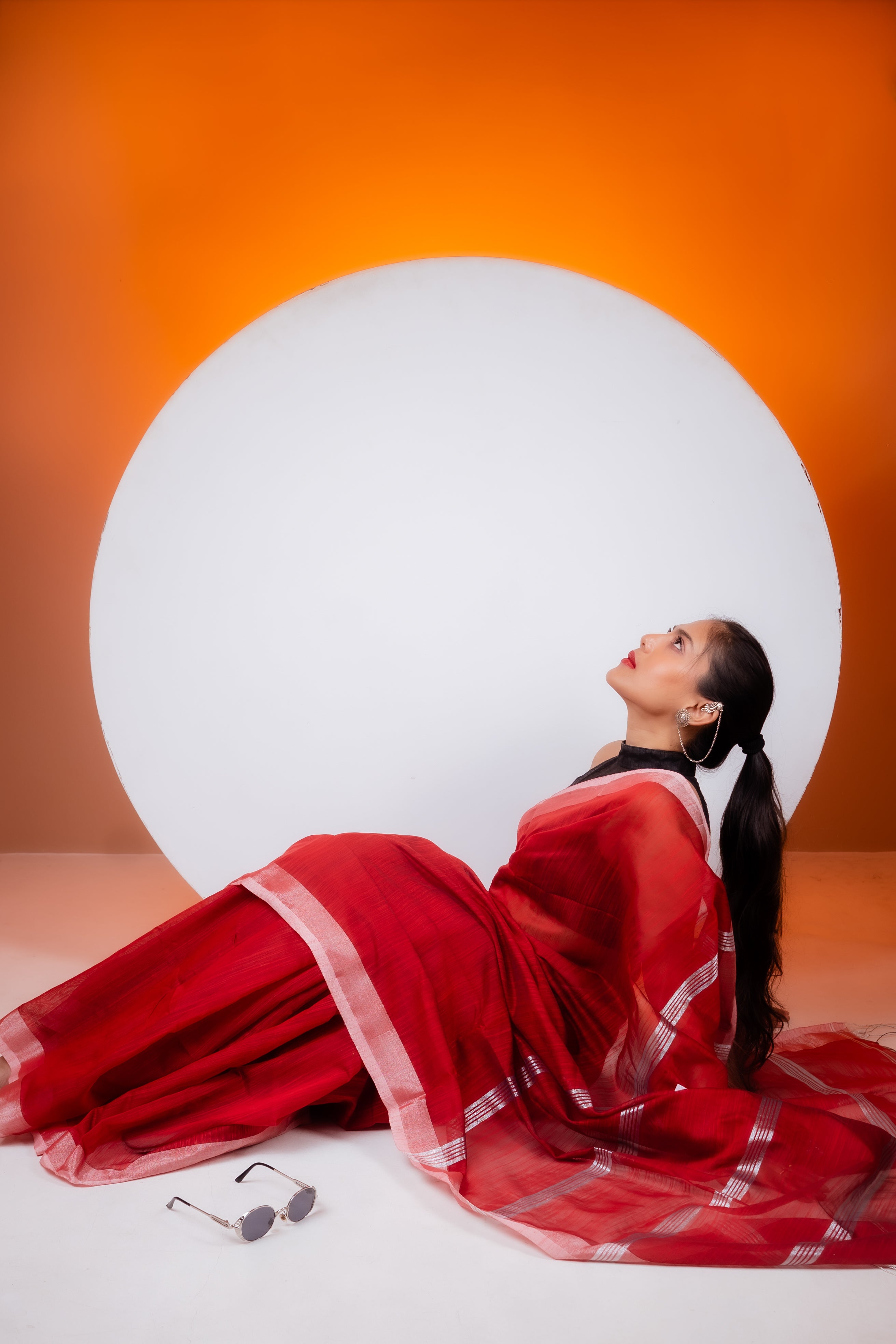 Pair it with a sleeveless silver blouse or go classic with red-on-red. Add oxidized or temple jewelry, a neat bun, and bold lips. Whether you're walking into a celebration or just owning your day — let Lalima Tara light your path.