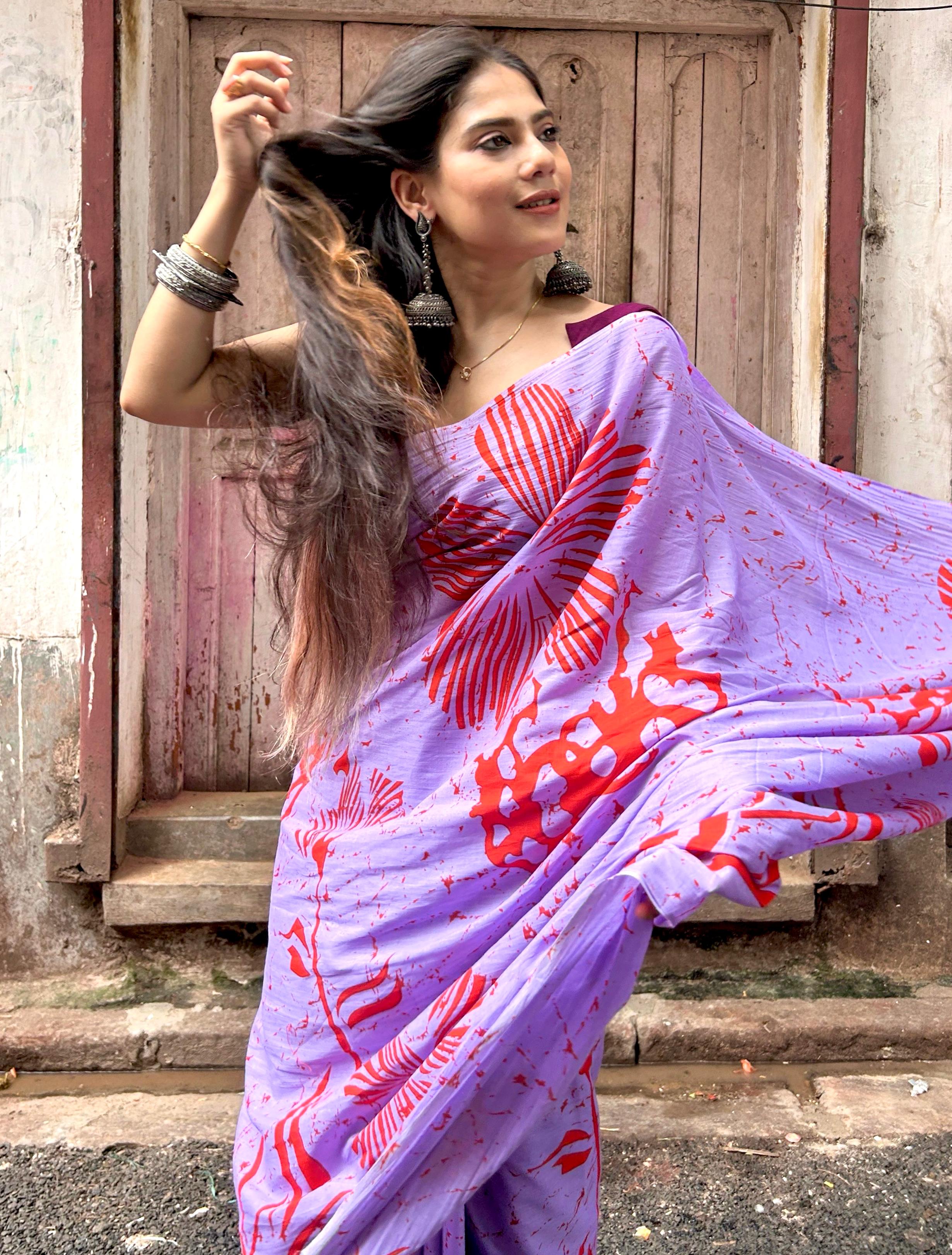 Pair Lavendar Whispers with a cobalt blouse and silver chaandbalis. Throw in a braid, bold eyeliner, and juttis for that confident day look. Want to elevate it for the evening? Add a backless blouse and glass bangles — effortless drama.